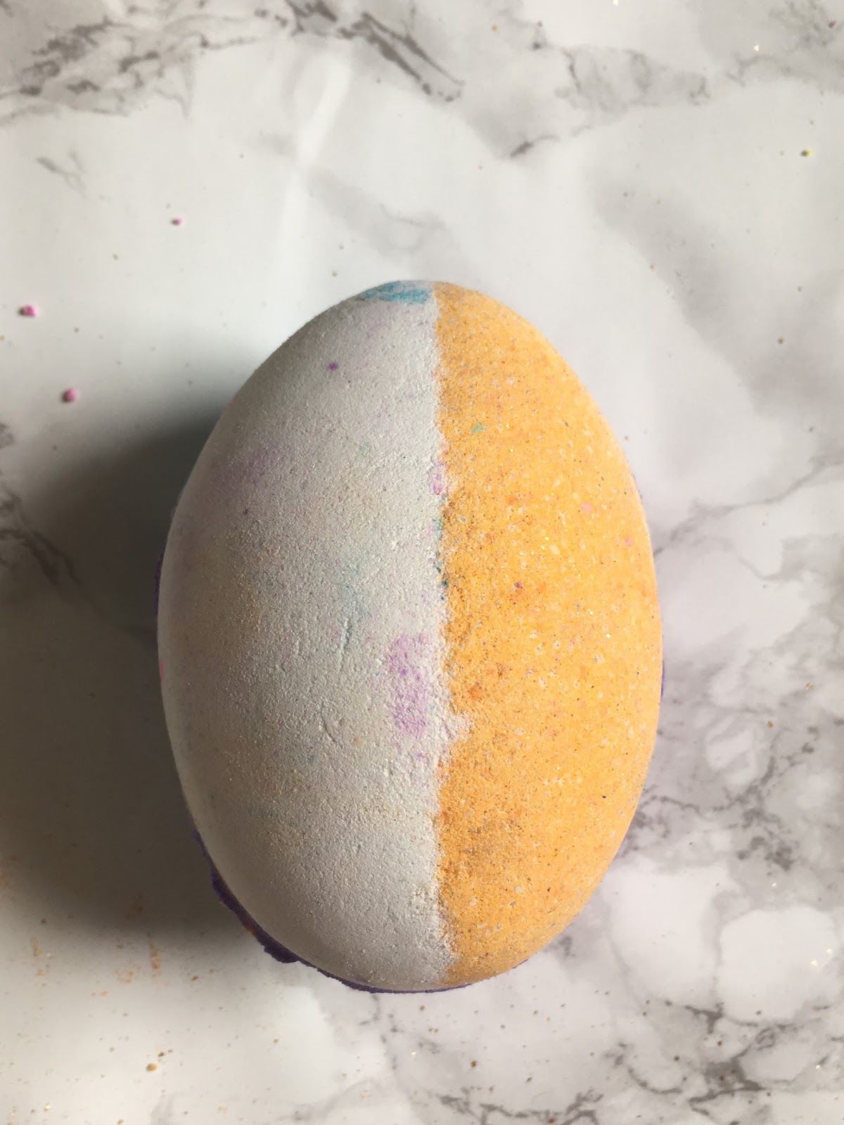 The third bath bomb Lush sized up for Easter was The Experimenter which is another one of my favourites. Just like the original it contains 4 different colours, on one side there is pink and blue and on the other side there is white and orange. These colours then put on an epic show in your bath (it's like an actual rainbow) however they do all go a grey colour when you get in, which makes me so sad. One thing I particularly love about this bath bomb is the fact the scent stays throughout your whole bathing experience and it leaves your skin feeling super moisturised.
